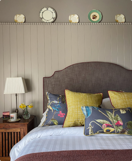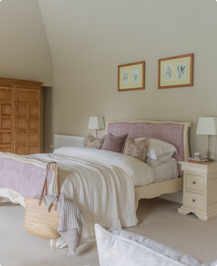 The Orchard Room is ideal for anyone staying with children or if there are 3-4 guests sharing the room. It has a cosy annex with a double bed just off the main suite, giving a little extra privacy. The Orchard has a marble tiled ensuite, comfy beds and lots of natural light.